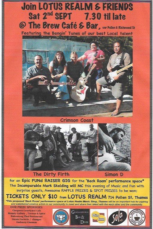 13 September 2017The FUNdraising GIG held at The Brew on 2nd Sept was a great success.We raised $2000 from the event towards our target. A capacity crowd was entertained by 3 amazing bands and the witty banter of the Master of Ceremonies, the cheeky raffle sales techniques of the Tattooed Lady, some beautiful glow poi and a bit of exciting auction action. Many thanks go the local business who provided raffle and spot prizes and other help: Ned Guitars of Coromandel, Bin Inn Thames, Chequers Courtyard Cafe, Sola Cafe, Grahamstown Bar & Diner, Grahamstown Coffee Shack, changes, Bounty Store, Vintage T'wist, Savour & Spice, Nakontong Thai Restaurant, The Embassy Cinemas, Lotus Realm Emporium, Spenser Probett, The Brew, Aroha Catering, Martin Marshall (Sound Engineering), The Musician's Club, The Bands: Crimson Coast, Simon Donald and The Dicks, The Dirty Firth. Thankyou all so much for your generosity.