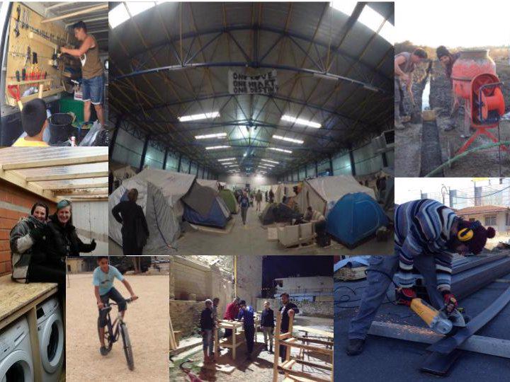 With the demand of projects and calls of assistance from refugees, NGOs, charities and other volunteers, the need resulted in the setup of a large workshop as well as the continuation of the mobile workshop vans in Thessaloniki. Emergency support includes food and clothing distribution, flooring and insulation for tents, electricity for camps, stoves made from old car rims, hot water bottles and sanitation.