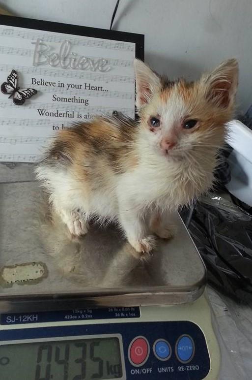 Four days in and we are just over the $1k mark - thank you so much! Community kittens often come into our care looking like this one - suffering from cat flu, flea infestation, and very underweight. These are not wild animals who can fend for themselves, and they do not do well 'on the streets' - every dollar this appeal raises will mean less stray/community kittens born. And the fewer that are born, the more chance those who are have of being rescued and finding one of the very limited number of good homes available. At present, sadly, a 'happy ending' is a far from a certain outcome for a community kitten.