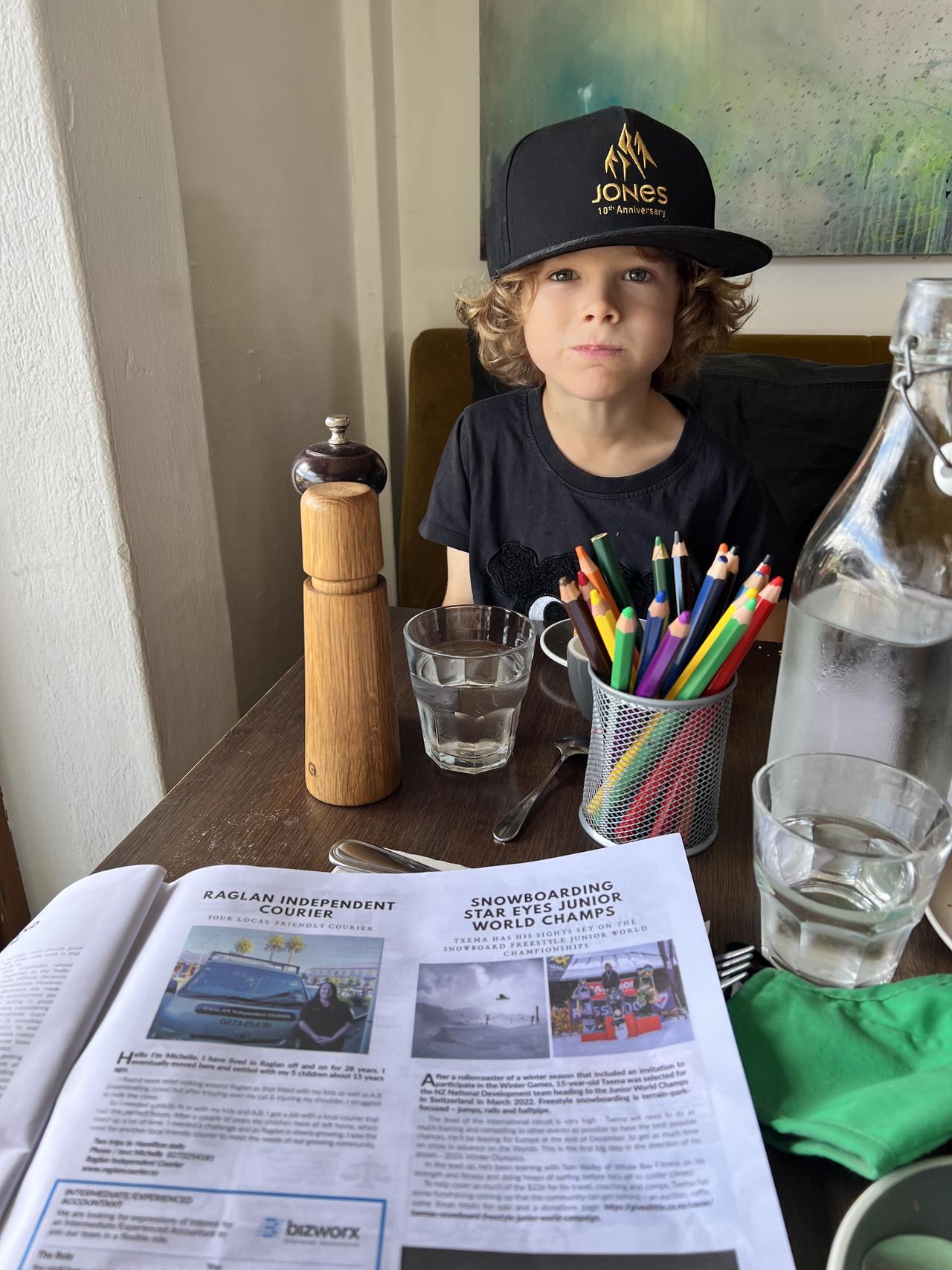 PHOTO: even little bro Eneko has helped, (he donated most of the things we sold at the garage sale) and earned a little 'fluffy' reward while we checked out Txema's article in the Local Rag.
