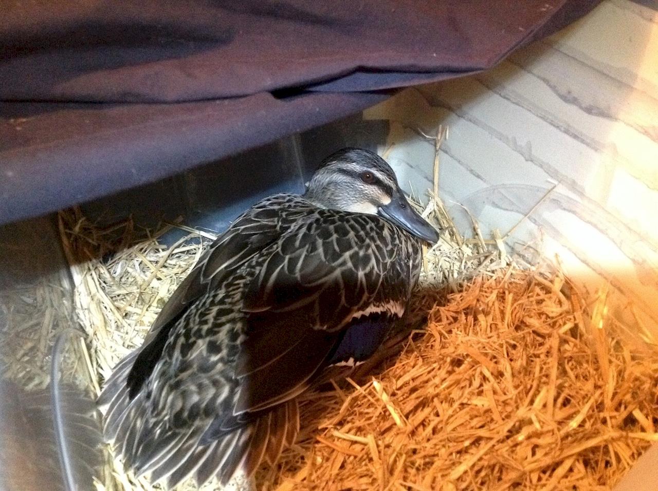 If the wing droop has been fixed by the wrap, the next decision is whether to put her in a body stocking again to try and resolve the angel wing, or whether to leave her as is, which would mean she will probably never fly. I am not particularly hopeful right now that she will be able to fly, at least not without expensive surgery which would have to be funded somehow. So it may come down to her quality of life and trying to assess whether she is in much pain from the wing, as to whether she is left as is, to live a protected but flightless life at Ducktopia, or taken to the wildlife hospital for likely euthanasia.