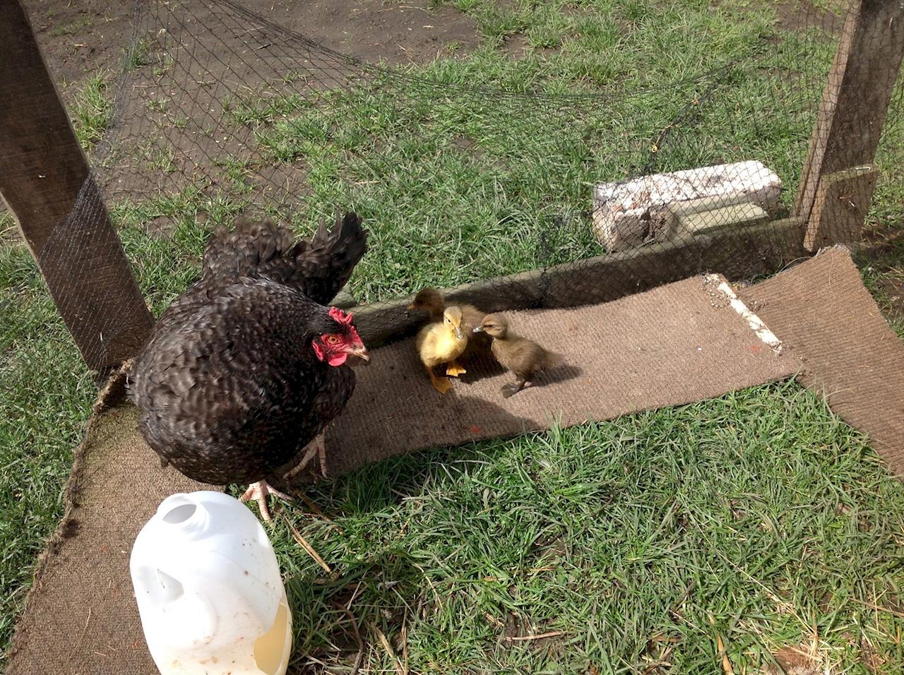 - 7 ducklings from the oxford Bird Rescue (siblings to Cindy's 2 adoptees). Two of these have names; 'Black Jack' and 'Cujo'. I hope to get a video uploaded sometime soon of these two, including a demonstration of how 'Cujo' earned her name! They have just started spending their days 'free ranging' around the compound. At night they are either outside locked in a house or indoors with me.