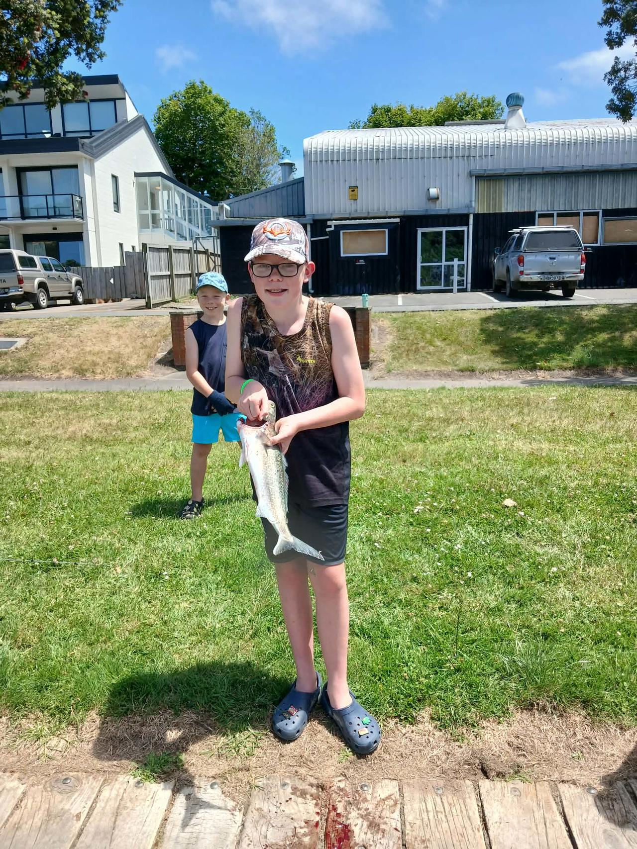 This guy 1st time catching a fish. Taught him to de scale , bleed it and gut it and fillit his little catch