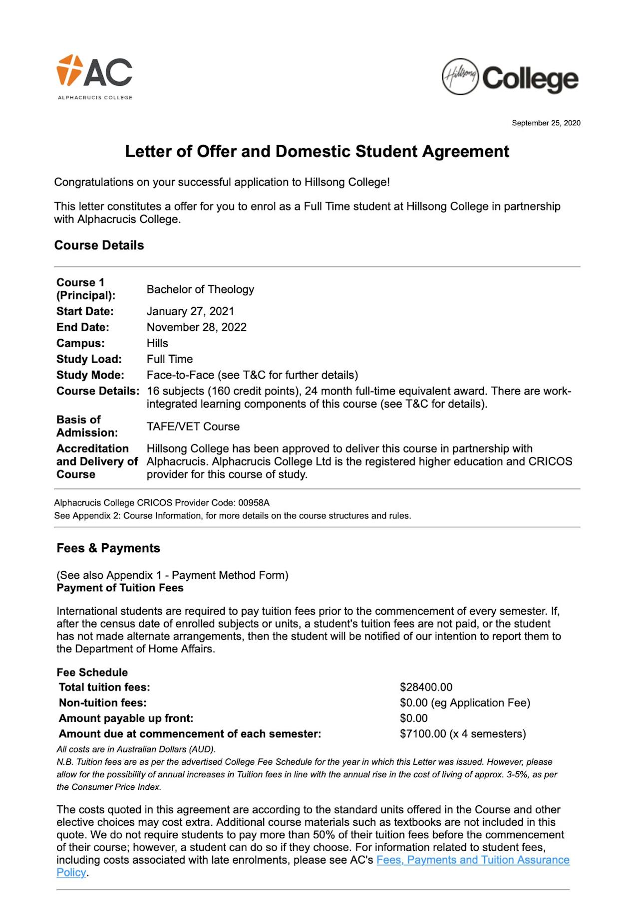 Good news, I've officially been accepted by Hillsong College for my course.