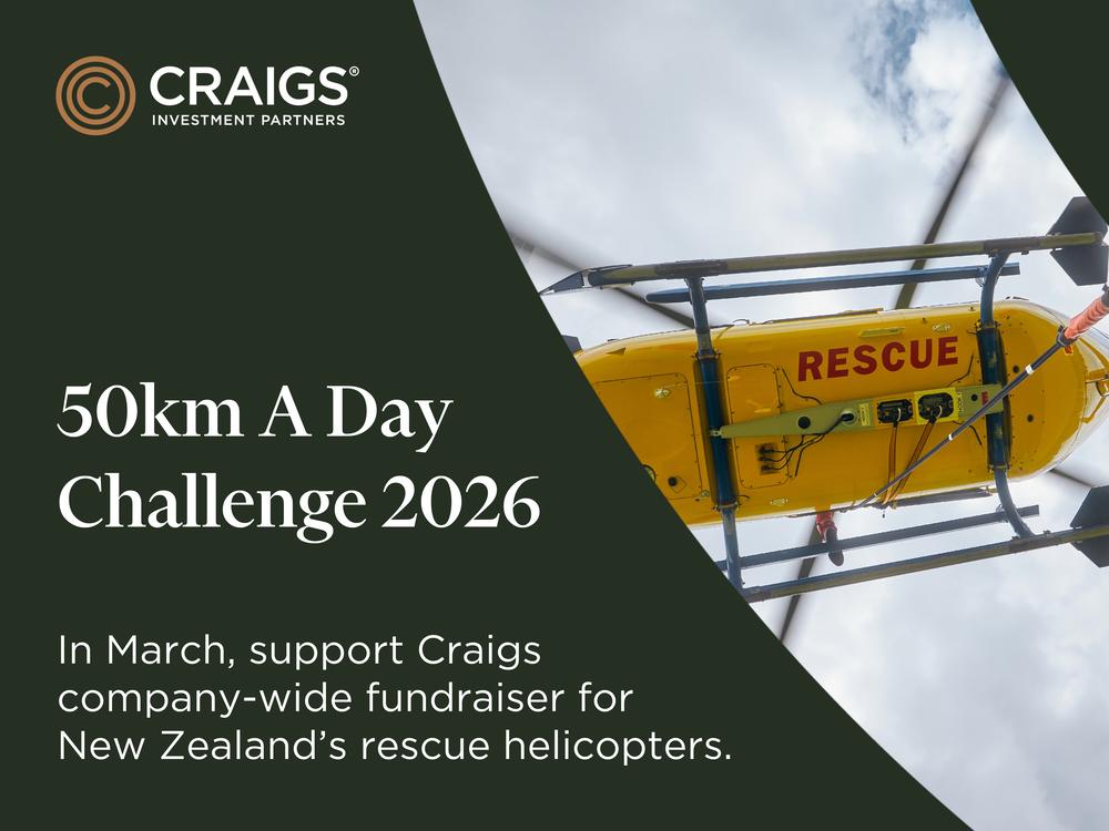 In March, Craigs Investment Partners will again be organising a company-wide fundraiser to support New Zealand’s regional rescue helicopters. This year, the company has generously agreed to support this challenge by matching upto $25,000 of funds raised for the various Helicopter Trusts.