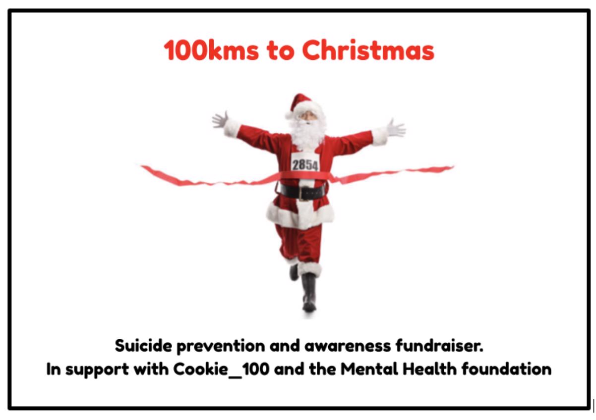 100kms to Christmas fundraiser to help support the work of the Mental Health Foundation assist in suicide prevention and awareness