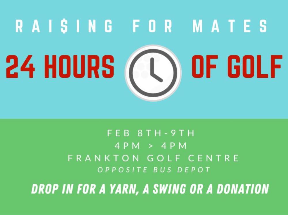 Suicide in the construction industry is a major issue in NZ. I am hitting golf balls on the 8th and 9th of February from 4pm - 4pm (a full 24 hours) to raise money for Mates in Construction to help combat this terrible statistic.