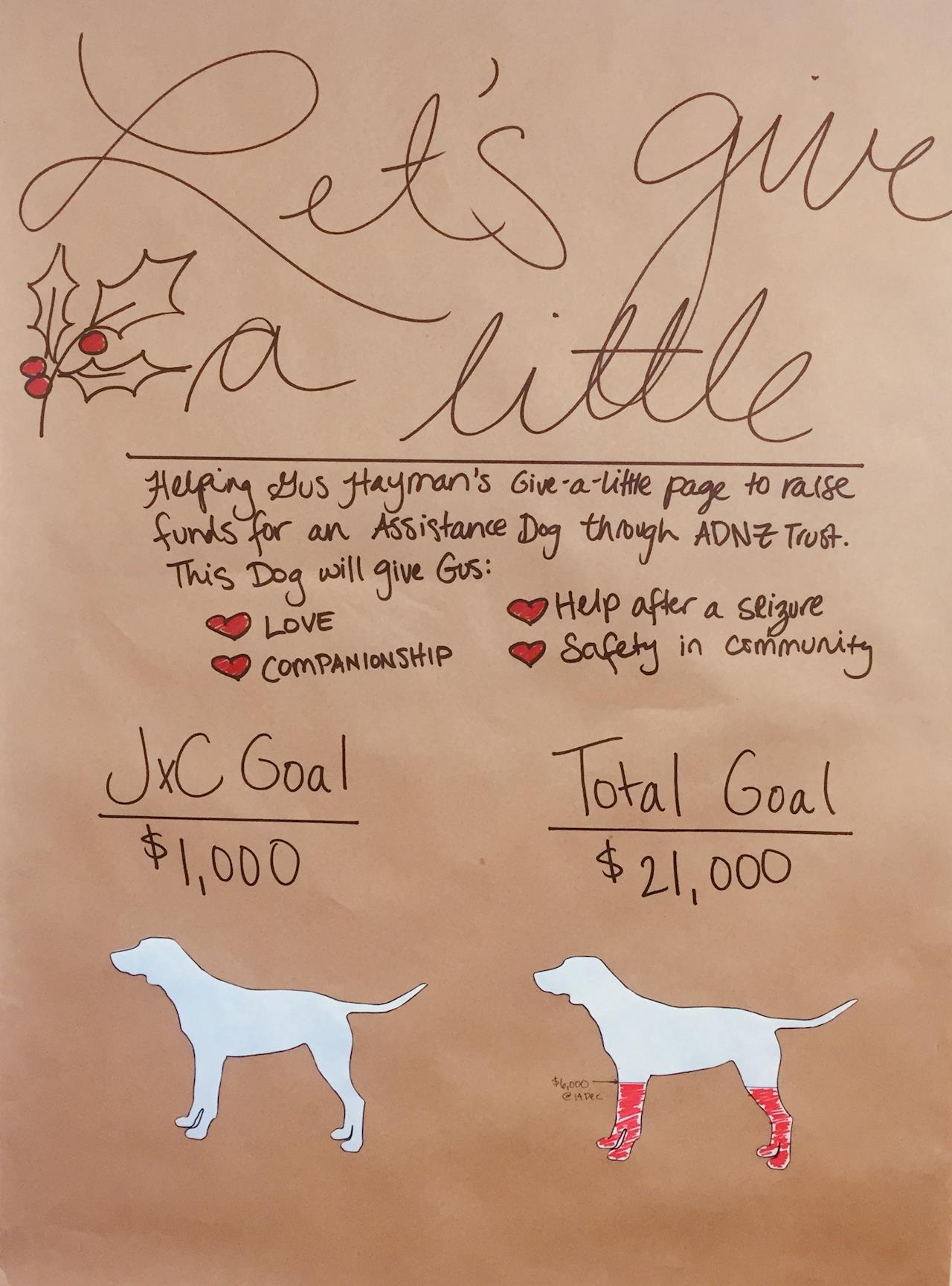 14 December 2017My workplace giving 110% to get Gus there as he approachs the $7000 mark for Christmas!!!!