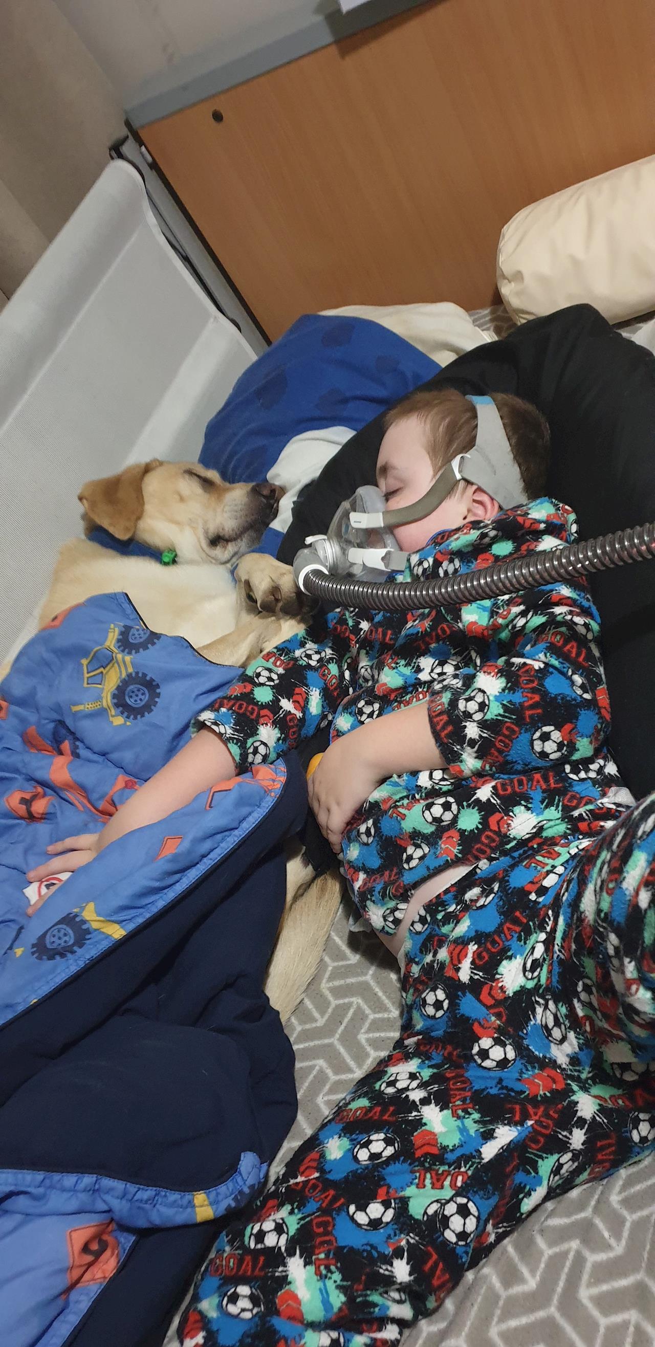 Liam (the dog) will retrieve items for Samuel, he will be his companion and alert adults when alarms go off such as Samuels feed pump and breathing machine plus more.