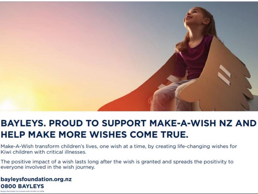 So to celebrate our Altogether Better philosophy and community focus, the Bayleys team in the lower South Island are getting together to support our partnered charity, Make-A-Wish NZ, who make wishes come true for Kiwi kids between 3 and 17 years old with a life-threatening medical condition.