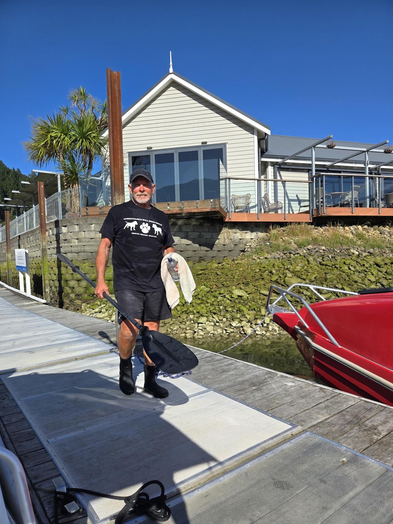 Graeme Codlin 68 Years Young, and a resident of Waitaria Bay in the Marlborough Sounds and loves dogs, Graeme has been training daily to row from Waitaria Bay to Havelock to raise funds for the CBBR in support of the fantastic work they do. Christchurch Bull Breed Rescue is a shelter in New Zealand dedicated to helping the dogs most likely to end up euthanized in our pound system. They rescue and rehome dogs from Council Pounds all over the country, that would otherwise be put to sleep. Be a sponsor and help save a dog’s life, it can be either by donation or sponsor by ks.
