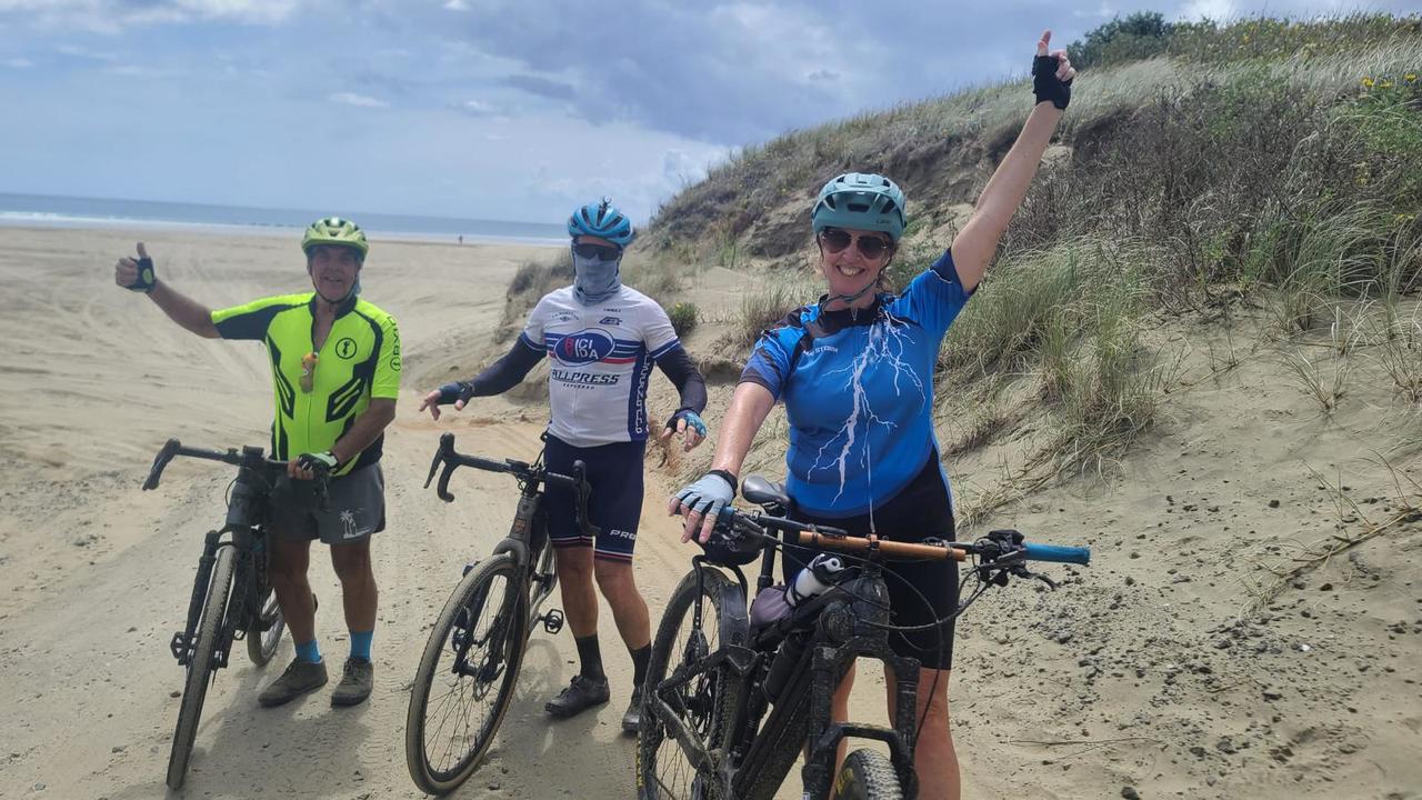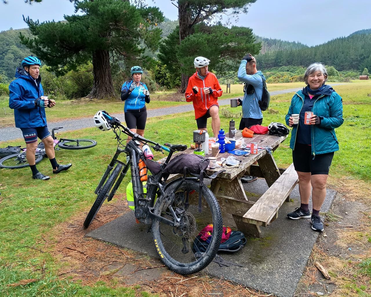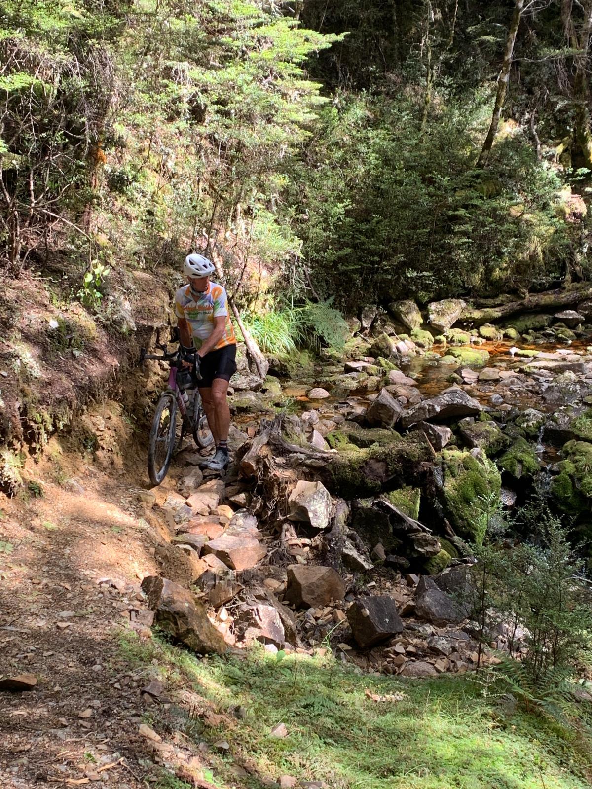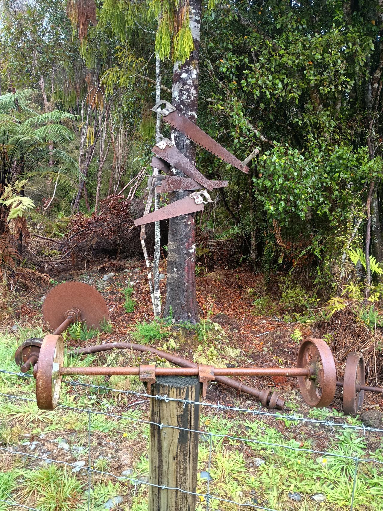 We had our first glimpse of Aoraki Mt Cook when the sun came up as we rode towards Ross. It was a beautiful day of rain-free riding on the West Coast. A bit of a drag for Neil however, who discovered his back brakes were slightly on for the first 40km and then later the same thing happened with his front brakes. He was wondering why he was feeling so tired. After some roadside mechanics his bike sped up considerably.