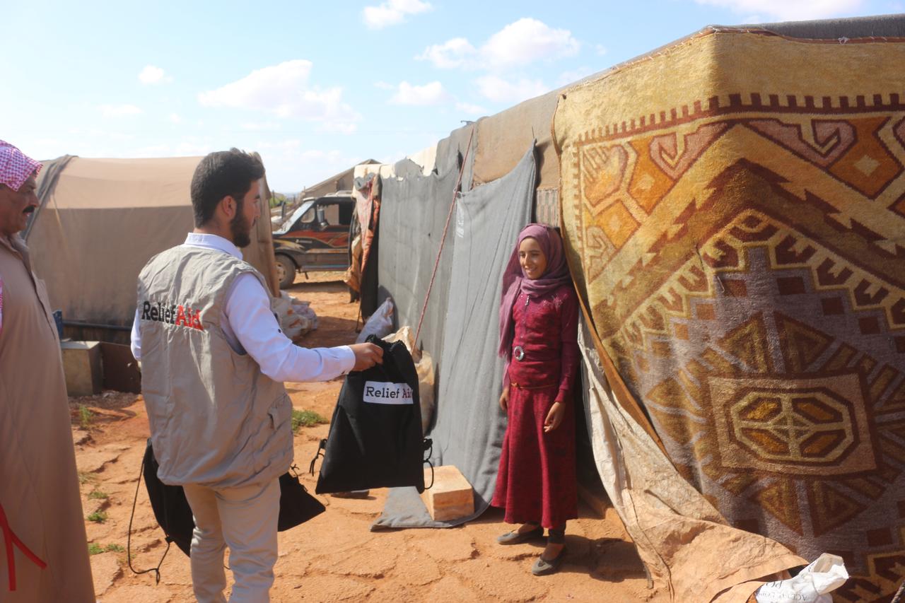 On October 18th, our Syrian based team, including Education Workers, Fatima and Rafed, arrived at the camp to distribute toys to children- as they went from tent to tent, they gave the family a bag from ReliefAid. Children had told us earlier that the toys they played with were old sardine cans that they pretended were cars and modelled homes and villages out of mud. Now they were being given balls, hula hoops, skipping ropes and whiteboards - and the reaction from the children was one of disbelief.