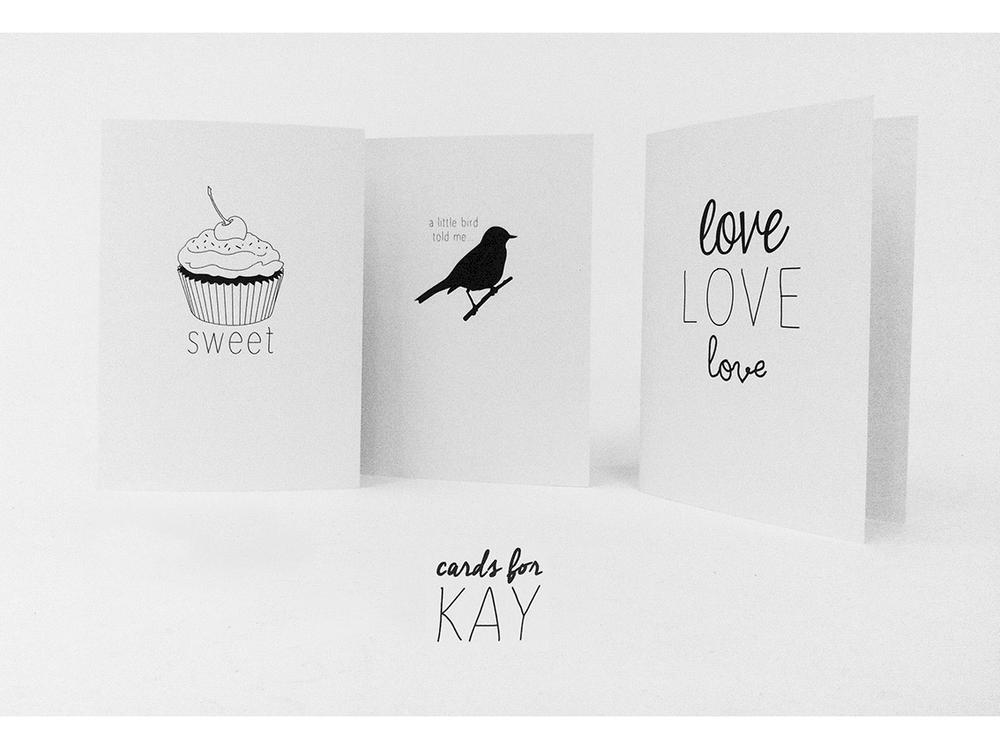 Selection of 3 greeting cards, custom designed by one of Kay's graphic designer mates to fundraise for Kay. "Cards for Kay" made with love.