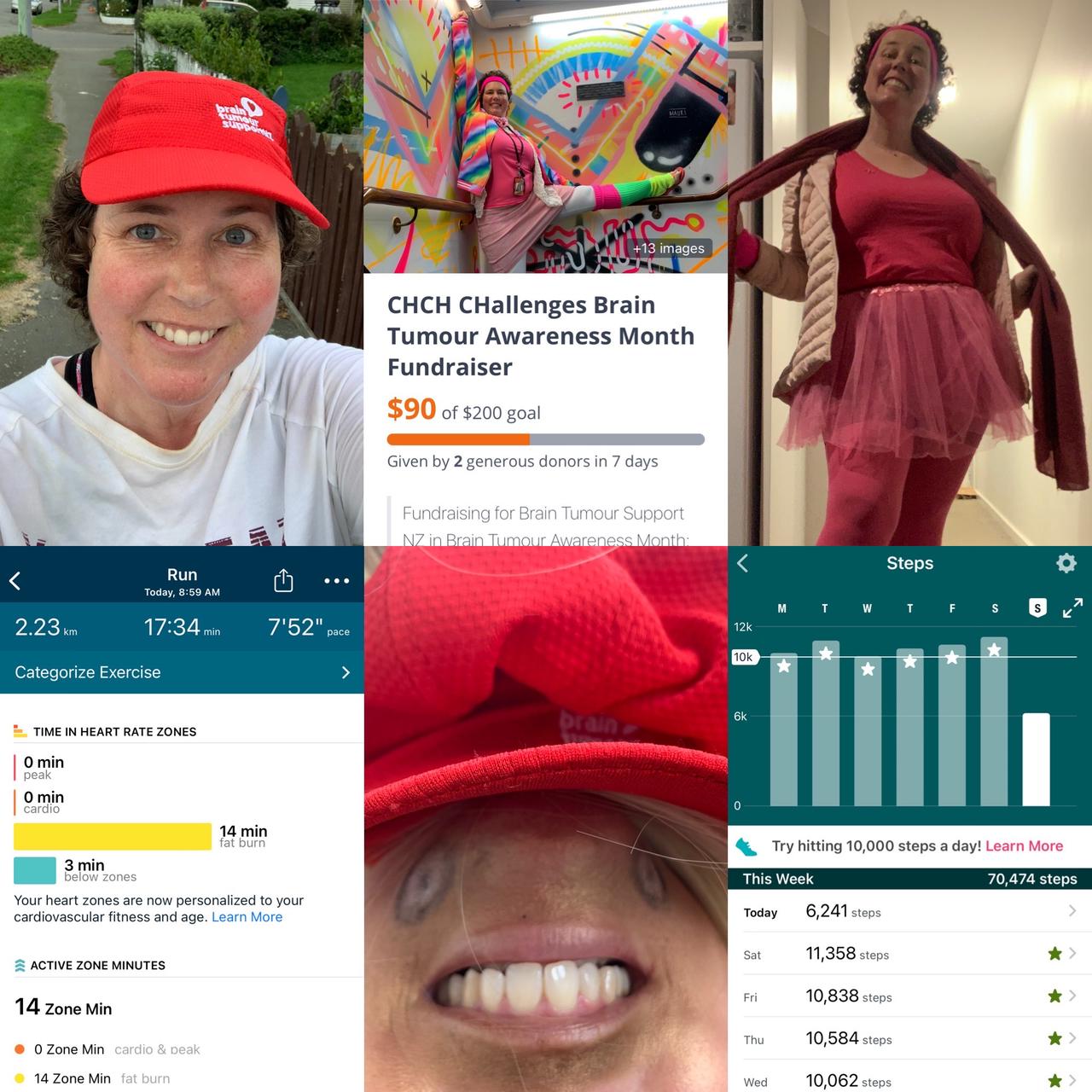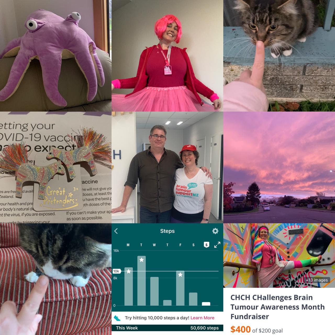 31 May 2023In Brain Tumour Awareness Month, as we consider our grey matter, it’s suggested that we “Go Grey in May”. Today I dressed all in grey - bar my BTSNZ T-shirt and hat. I went to work, I made a cup of tea, I drove my car, I picked up a friend from the airport and I went shopping (just the essentials). I saw some raised eyebrows, but I definitely raised awareness! All the things I did today would have been impossible for me to do during certain stages of my brain tumour journey - and remain impossible for many in the brain tumour community. So I’d like to thank you for being part of Brain Tumour Awareness Month with me (and Donald), ask that you share my story and help raise awareness, donate/givealittle for the next week and PLEASE take a moment to appreciate what your grey matter does for you! Over Brain Tumour Awareness Month WE HAVE RAISED $470 for Brain Tumour Support NZ. That’s almost 5 of their wonderful Brain Boxes. BTSNZ have sent out 500 Brain Boxes altogether. I’m thrilled to be able to help them do their amazing work. Meanwhile, I have been hard at work, juggling life and fumbling fundraising challenges. I’m chuffed to share that I challenged myself to a surgery-free month. I made it! Woo hoo!!!
