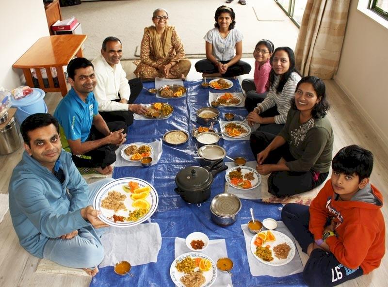 In Pinakin’s home the tradition to sit cross-legged on the floor during mealtimes.