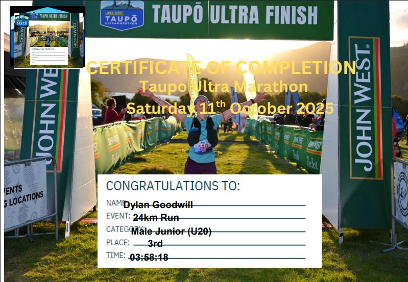 (The good people of the Taupo Ultra have also made a special allowance for him to enter this event, him being 12, not 16!)