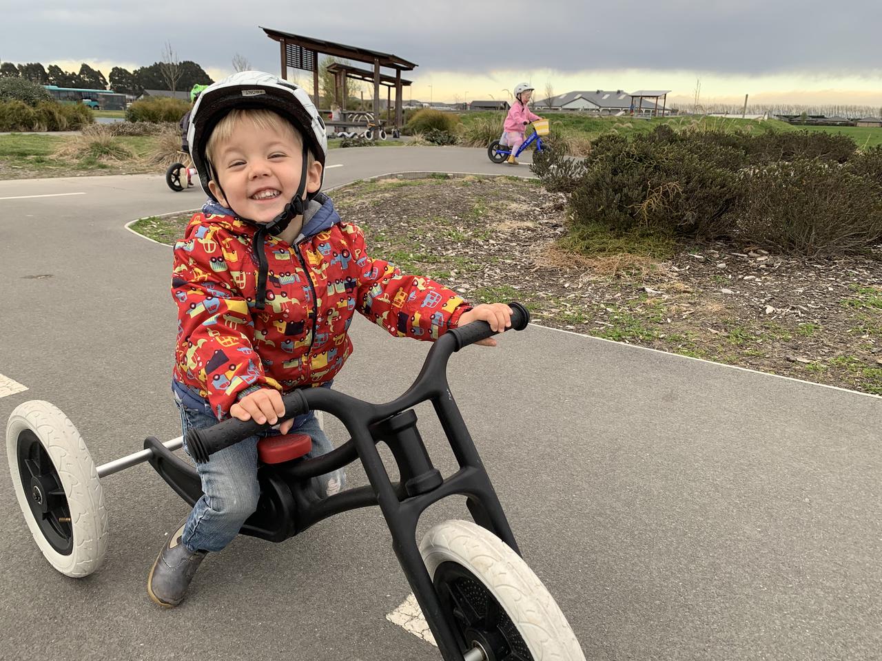 Elliot it getting out for a wheels day at the bike park with his friends from homebased care. They are raising funds for Conductive Education, who have been a huge support to Elliot and our whanau this year.