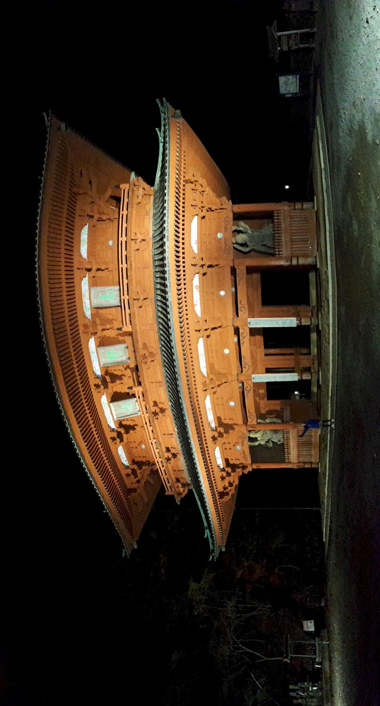My companion Nagisa joined me for the final walk, 6 hours hiking up Mt Koya, and we arrived after dark, temperature a few degrees above zero, at the massive Daimon (large gate) which marks the entrance to the mountain-top monastery town. It's a breathtaking sight to behold when you walk up out of the forest and the flood-lit structure fills your vision!