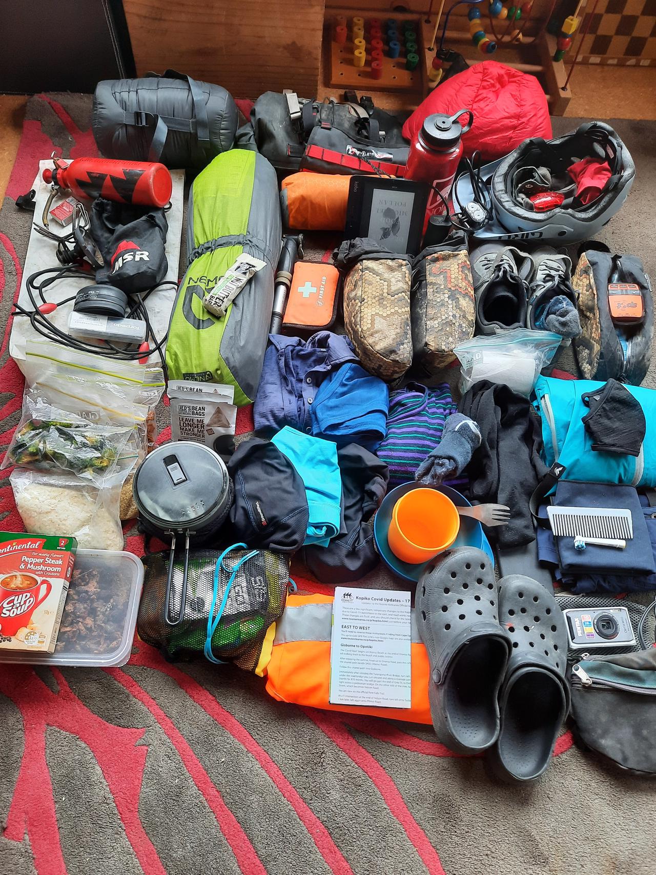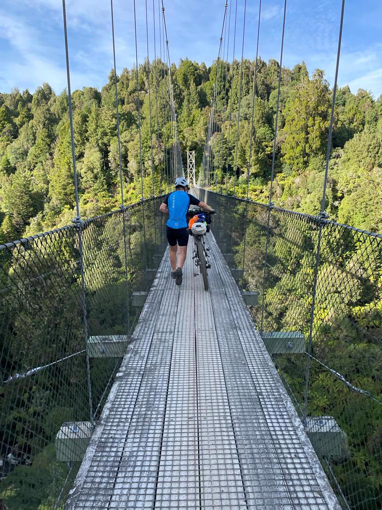My Kōpiko was the challenge I knew it would be, although it took fewer days than I thought. I had no fixed schedule, but the 11 days of actual riding shaped themselves. Bikepacking for 950kms and 12,000m of ascent across the central North Island (east to west) from Gisborne to Cape Egmont was physically demanding, educational and reflective, with the trip co-inciding with the anniversary of Jim's 10th. I was largely self-supported, choosing to tent and cook my own meals. The weather was kind, if not a little too hot. As a bonus, I got to raft the Tongariro R on a dam release. The route, a mix of mostly gravel back roads with (welcome) sealed ones, was originally conjured by the Kennett Brothers and Erik Westra. Fertile plains, pioneer roads and tunnels, forestry, mining, hydro power history, horticulture, pastoral land use, Nga Herenga cycle trails, tunnels, swing and suspension bridges, geothermal areas, a tangihana, dirt bike racing, Kiwis campervan exploring, exotic and native arboretum, and connections from yesteryear re-cemented....and $3300 raised for CAP (Christians Against Poverty) who give a hand up, rather than a handout, to Kiwis caught in the poverty trap. It is not too late to donate. Thanks for coming with me on the ride. The accompanying photo...I thought I had lost my tent pegs - found a trailer nearby with electric fence standards...on packing up the next morning found that I had slept on top of them!