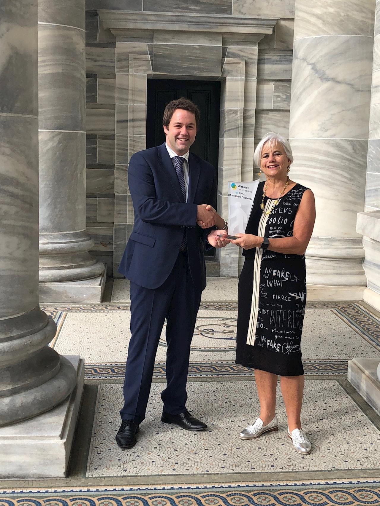 28 March 2018Today our CEO Heather Verry, presented the Diabetes NZ Fitbit MoveMeant Challenge trophy to the 2018 champion, Hamish Walker.