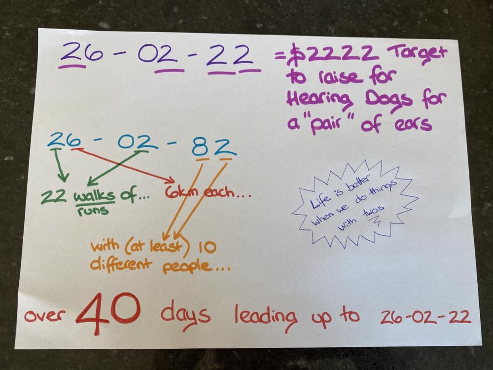 Raising $2222 for Hearing Dogs NZ for a "pair" of ears using the special numbers of 26, 2, 82 :)