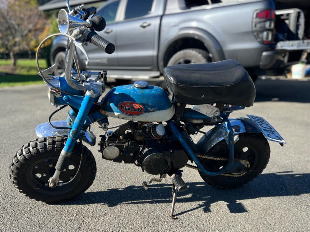 While the little blue Z50 only made it as far as Motueka River West Bank Rd, a mate came and swapped the bikes for my modern Monkey and I got to carry on. The whole ride was great, a few others broke down but we all made it back to the Speights Ale House at the end of the day. Thank you all that supported me.