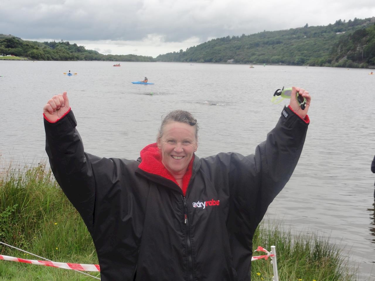 As I came to the finish another non-wetsuit swimmer came along side and raced me into the finish, I picked up the pace a little and felt so pleased with myself, all the 5am mornings and going for a swim even when I was tired or grumpy was now worth it. I came into the finish and was offered a hand out, but had to go over to Wayne and thank him and give him a kiss, I know he would have loved to have swum alongside me, but he wasn’t able to, his support, help and guidance was invaluable and without him I doubt I would have had the confidence to do it.