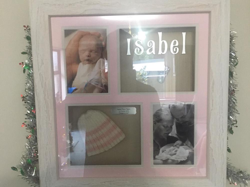 Something that was very special to us was having Project Butterfly sponsor a beautiful frame with Isabel's hand moulds and other special memrobilia. My wife Tracy and I would like to make this sort of thing possible for other families in similar situations.