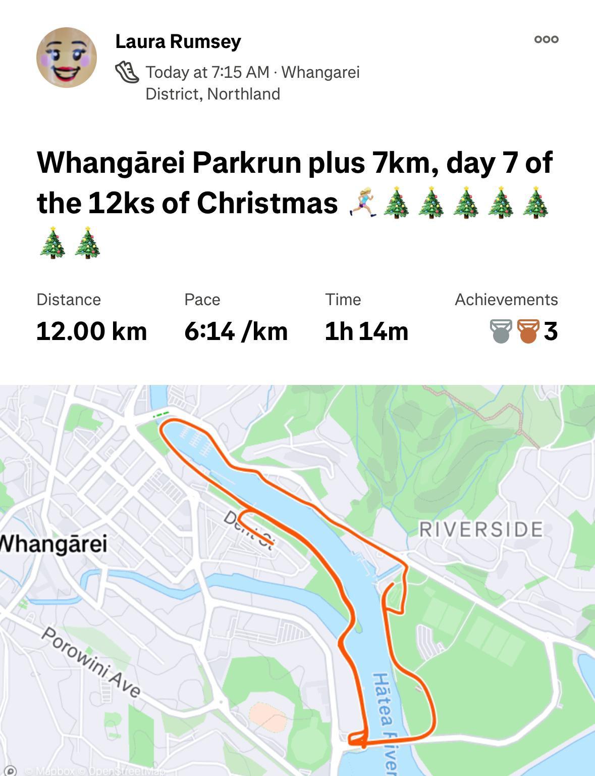 Some different locations for the runs and walks today. Tracey did hers in Auckland and Laura & Alex completed their 12ks in Whangarei which included the regular Saturday morning Parkrun, plus 7kms of course!