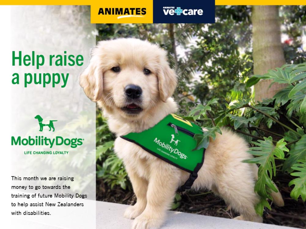 Animates has partnered with Mobility Dogs this August to help train and raise puppies to enhance the lives of New Zealanders living with long term disabilities.