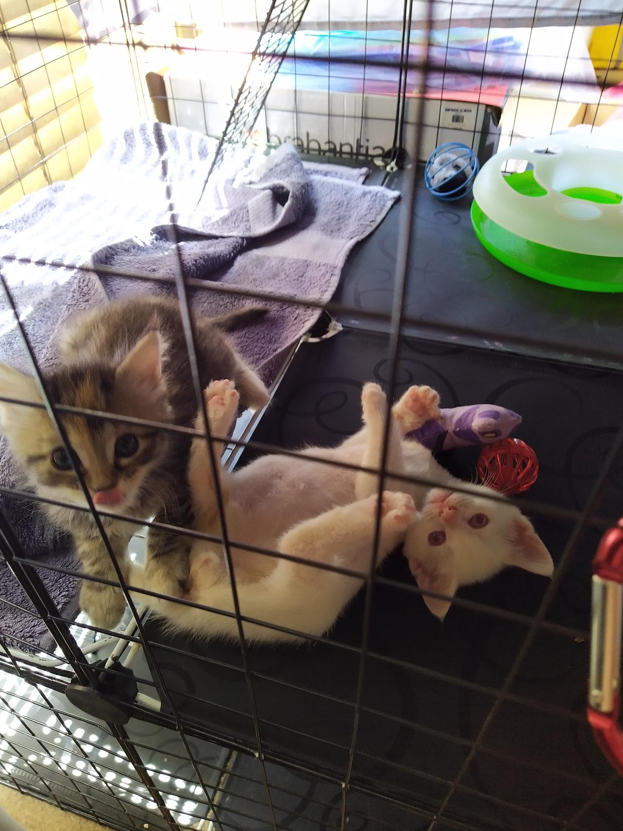 7 January 2022Olaf has joined his brother & sister at my place. His foster mum was having a hard time weaning him - he was refusing to eat from a dish! We decided that being with his siblings might help him learn how to eat and play like a normal kitten... And it worked! He started eating from a bowl at his first meal with Barry & Billie! They have fully accepted Olaf and love him to bits, despite him being so much smaller than them. Believe it or not these guys are all from the same litter - look at how little Olaf is compared to Barry & Billie! 🙀