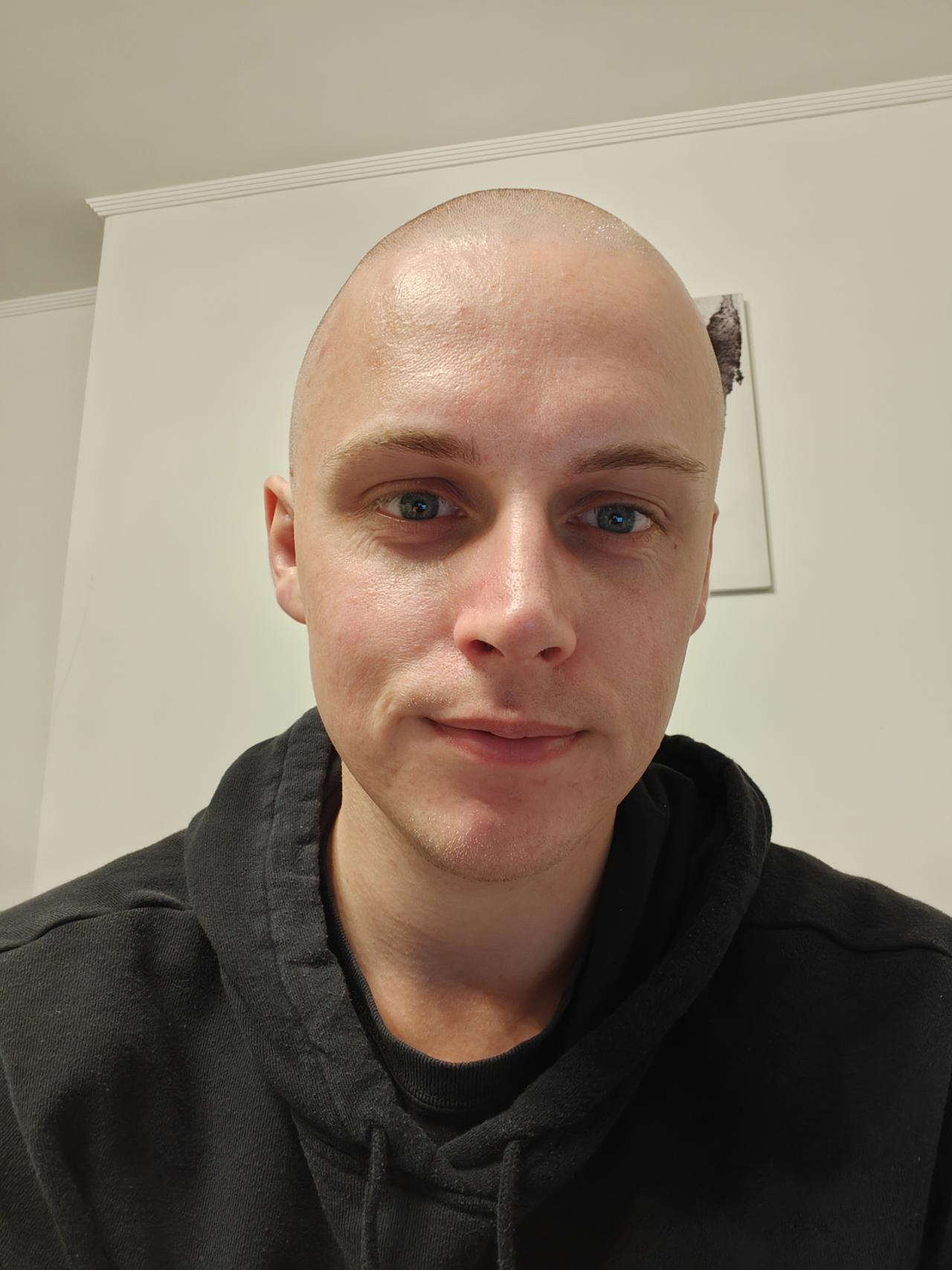I have been overwhelmed by all the compliments on my head shape, the noggin is in full force and growing back fast, pictured is me a month ago right after the shave!