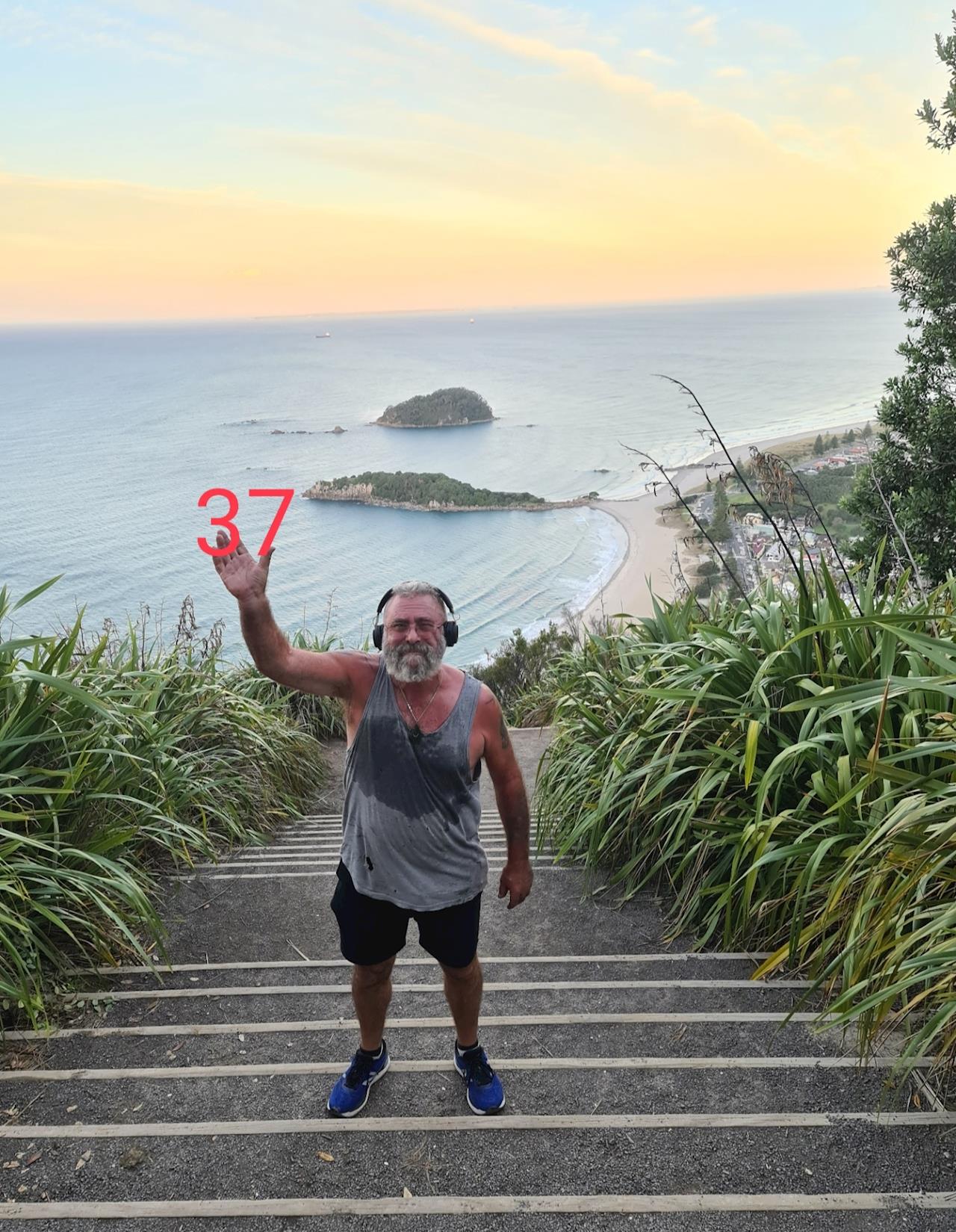 Parking this afternoon I looked at all the gear in the ute I use to climb the Mount . Bum bag for phone and keys , weight vest sitting under my seat and of course my earphones....and I looked at the Mount and said bugger it , or words to that effect. I set off leaving it all behind , phone in the pocket and keys clipped to the draw string in my shorts. I wanted to reach down deep with my heart and hug my soul ...and I walked past the surf club , there was no one there and I didn't expect anyone but......