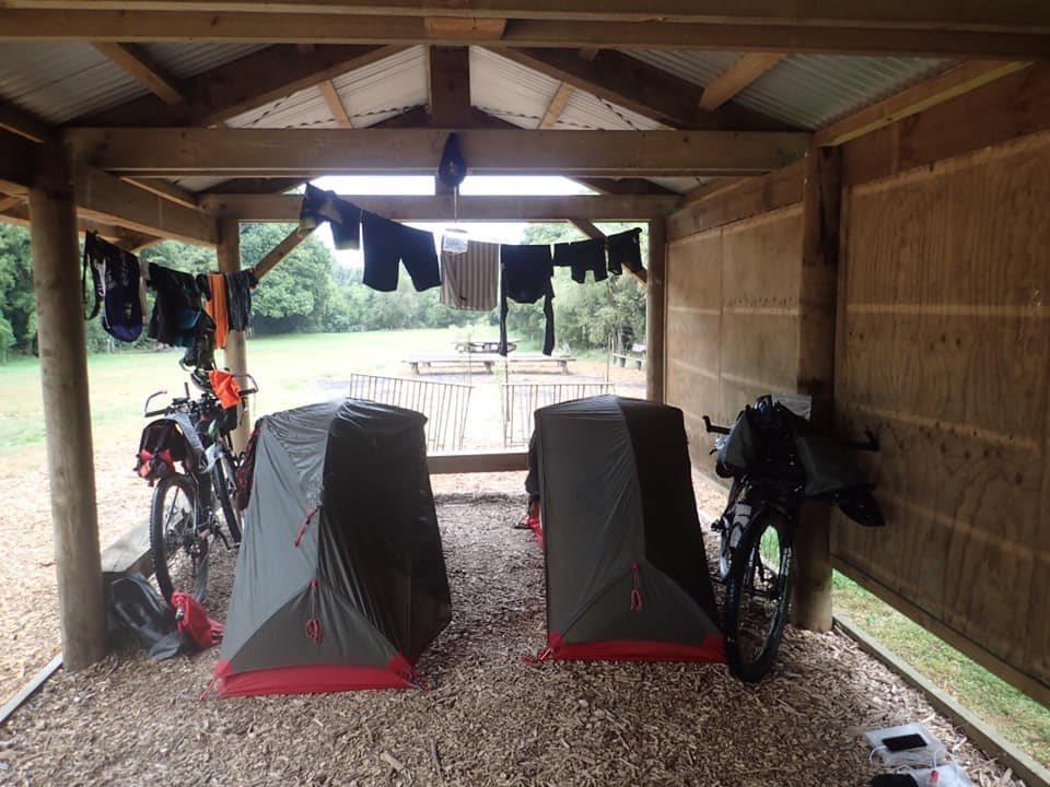 The camp proprietor was in an exceptionally jovial state and was very helpful setting up lines in his garage to dry our tents and store our bikes.