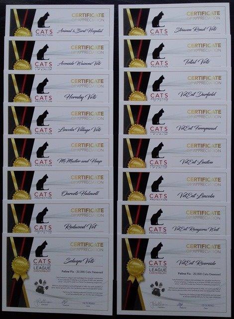 The programme, which we named “The Feline Fix”, commenced on 1 July 2010 and last month we achieved 20,000 cats desexed under it. This week we have personally thanked the vets who are currently working with us and also wish to acknowledge a number of other vets have also contributed during this time. Without all of them, this achievement would not be possible so thank you to all current and past vets whose partnership with us has made such a difference to the cat population and health in Canterbury.