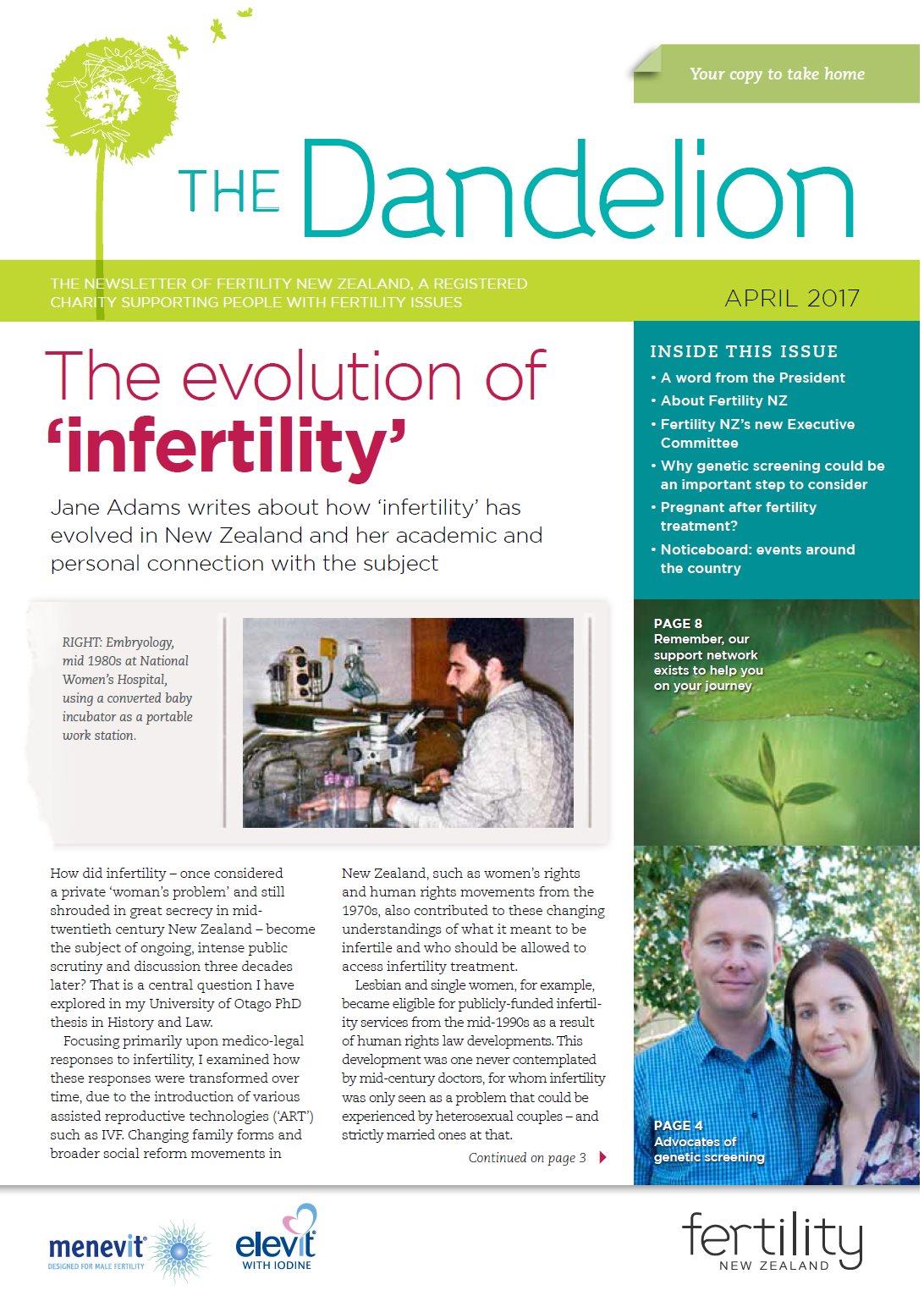 29 July 2021In this edition of the Dandelion we announce Fertility Week 2021 6-12 September. We talk about valuing our egg donors, Louise reflects on a journey that ended without a child and a grandmother-in-waiting shares her perspective. Check out our FNZ support events, learn more about the Fertility Support Series and who to contact! https://www.fertilitynz.org.nz/information/dandelion-newsletter/dandelion-spring-2021/