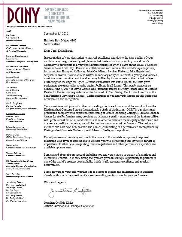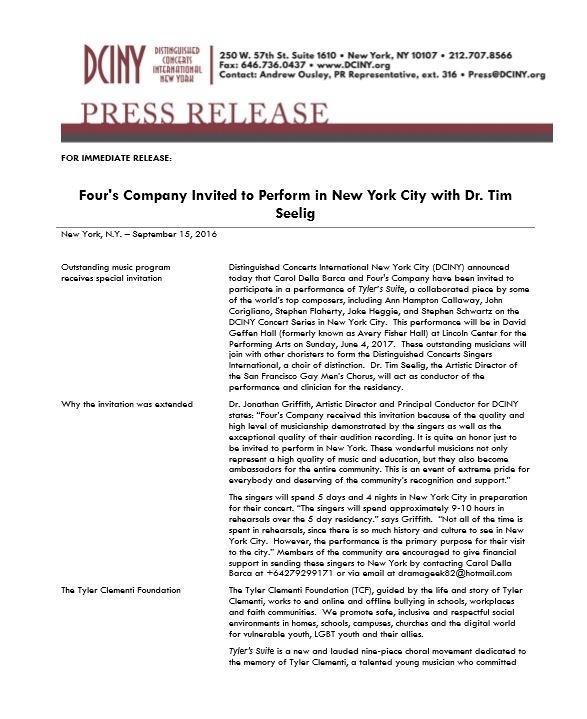 Four's Company will 'Make it There' and are now confirmed, flights booked, accommodation sorted and voices primed for a performance at the Lincoln Centre for the Performing Arts in New York City 2017 with Distinguished Concerts International New York - DCINY