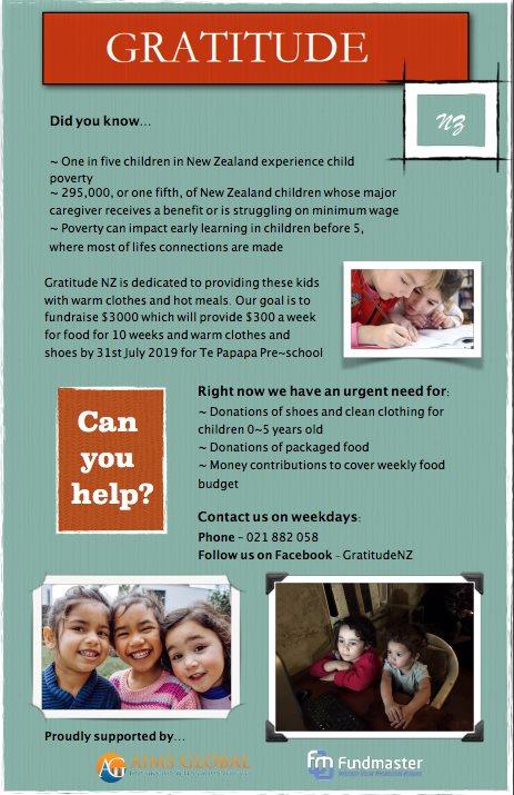 6 August 2019Gratitude NZ's first Te Papapa Preschool project was amazing.. We not only handed over $3000 raised and 8 - 10 donated clothes and shoes, but while there a beautiful lil girl came up to me and happened to get her only jacket of the day wet, she was in jandals and freezing. I asked her if we should go find her a jacket? She said yes and just like that she was warm for the day. Such a great feeling to be able to make a small but important difference to our next generation.