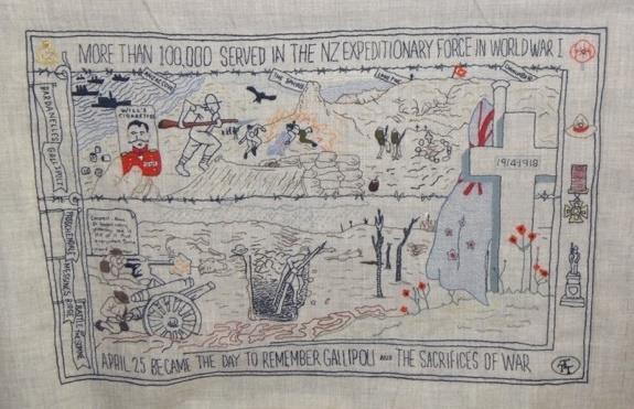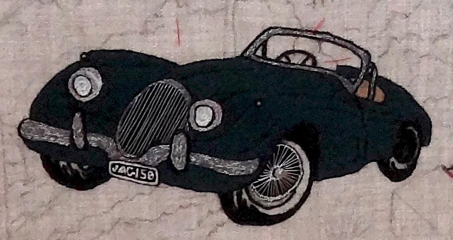 26 August 2016This AA car is in the process of being stitched by ladies from the Otago Guild. It is an item on a new panel, the second panel to be stitched by the ladies of the Otago Embroiderers'Guilds.