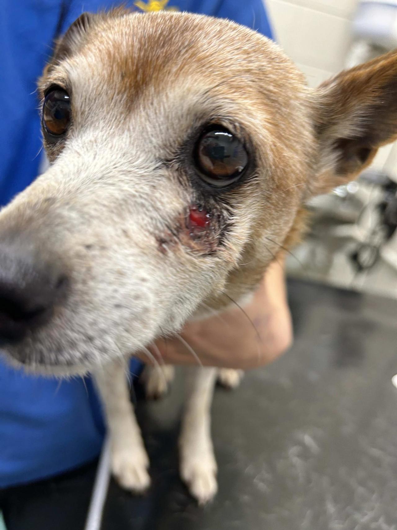 Our vets and their findings were so heartbreaking !!!Her mouth is rotting the roots of her teeth are exposed and her teethe are green !!! One side of her mouth they could not get into as she appears to have an abscess which may have burst and is oozing out through her cheek !!! It’s dire and they said she needed urgent surgery I wanted to cry as I said goodbye and left her there overnight!!!! This sweet 12-year-old girl was found wandering the streets and ended up in the pound with a mouth in dire need of help. Her teeth are rotting, and she has a painful lesion that burst on her cheek. Despite her suffering, with her rotting teeth and the painful abscess in her mouth Poochie greeted us with a wagging tail, eager for love and cuddles.